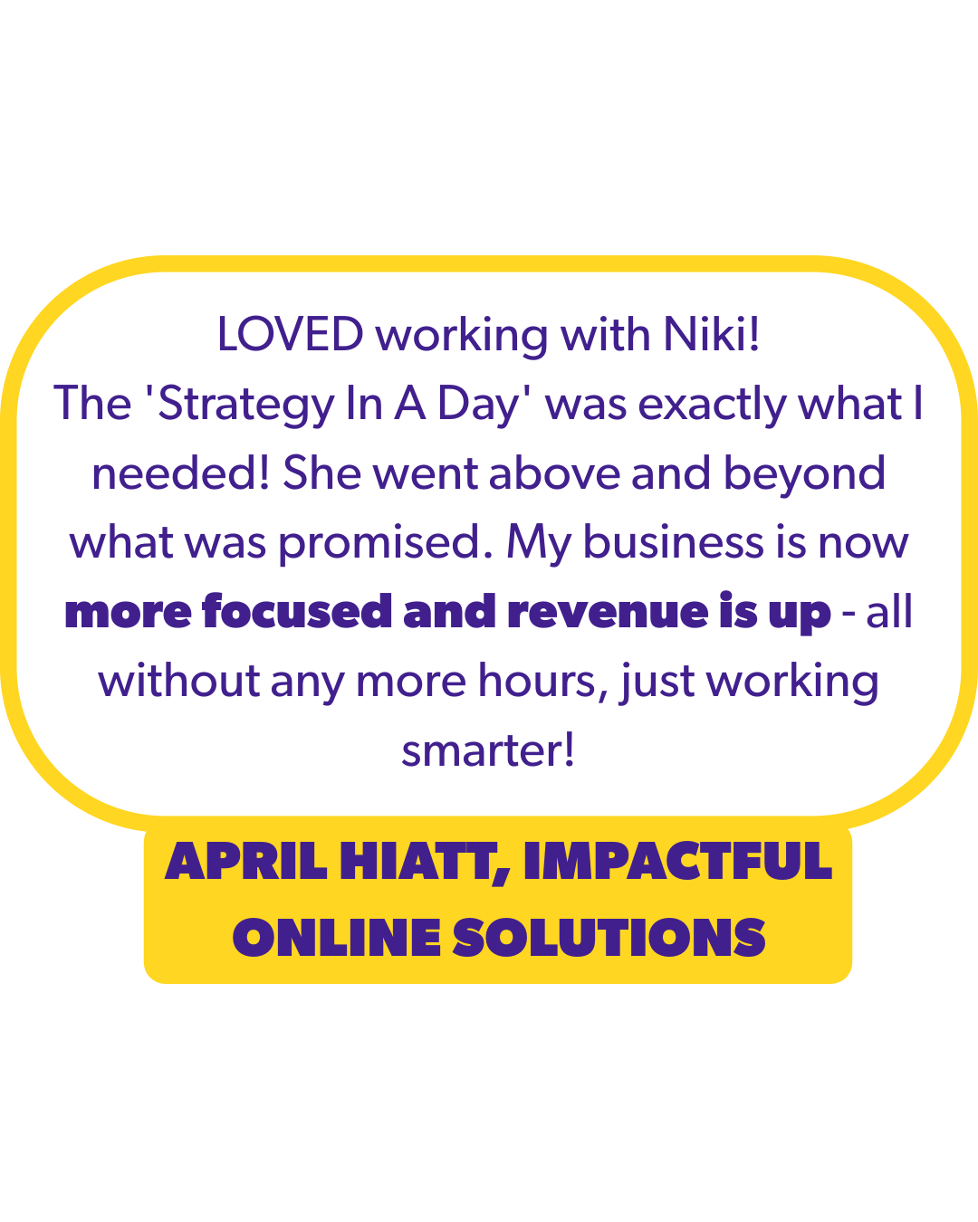 The moment I heard Niki speak at an event I knew I had to find access to her genius. She blew me away with her framing of questions about my business and on meeting, she seemed to "get me" instantly. If you need to refocus your marketing, get clarity and find a pathway forward, just chat to her and you'll see... she's the best.